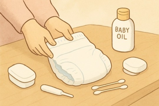 綿棒にオイルをつけて、優しくお尻にあて、少しずつ回すように挿入。