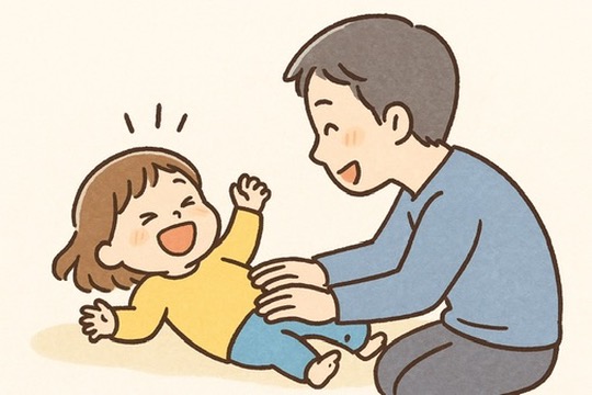 わが家の子どもたちはくすぐりに弱いタイプ。寝転ばせて腕を軽く押さえ、お腹に顔を当てて「ううう〜」と唸ると、キャキャキャと大笑い。その笑い声を聞いているだけでこちらも幸せになります。