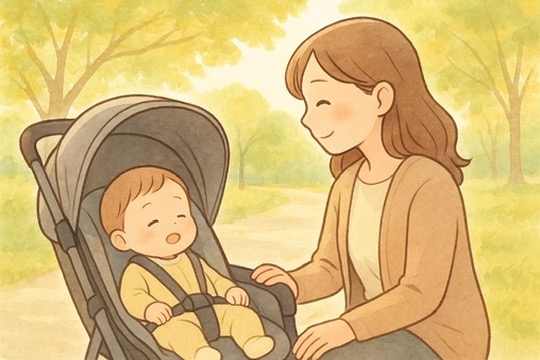 赤ちゃんにとって、ベビーカーはまだ“慣れない場所”。