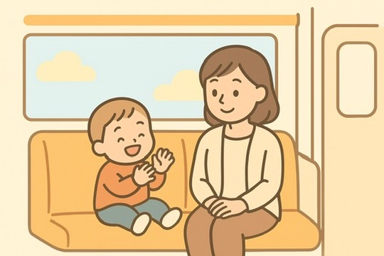「楽しいね!でも電車の中では手でパチパチして気持ちを伝えようか」